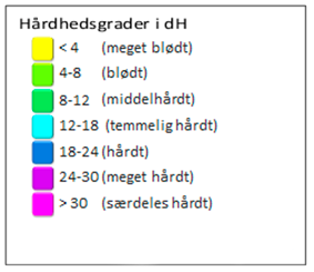 I Danmark inddeles vand i følgende hårdhedskategorier:
